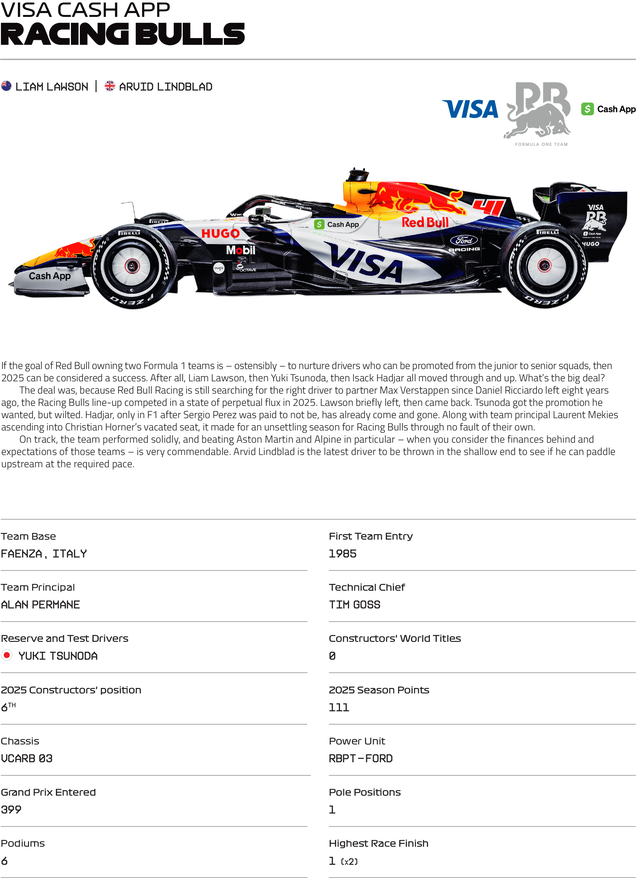 The deal was, because Red Bull Racing is still searching for the right driver to partner Max Verstappen since Daniel Ricciardo left eight years ago, the Racing Bulls line-up competed in a state of perpetual flux in 2025. Lawson briefly left, then came back. Tsunoda got the promotion he wanted, but wilted. Hadjar, only in F1 after Sergio Perez was paid to not be, has already come and gone. Along with team principal Laurent Mekies ascending into Christian Horner’s vacated seat, it made for an unsettling season for Racing Bulls through no fault of their own.