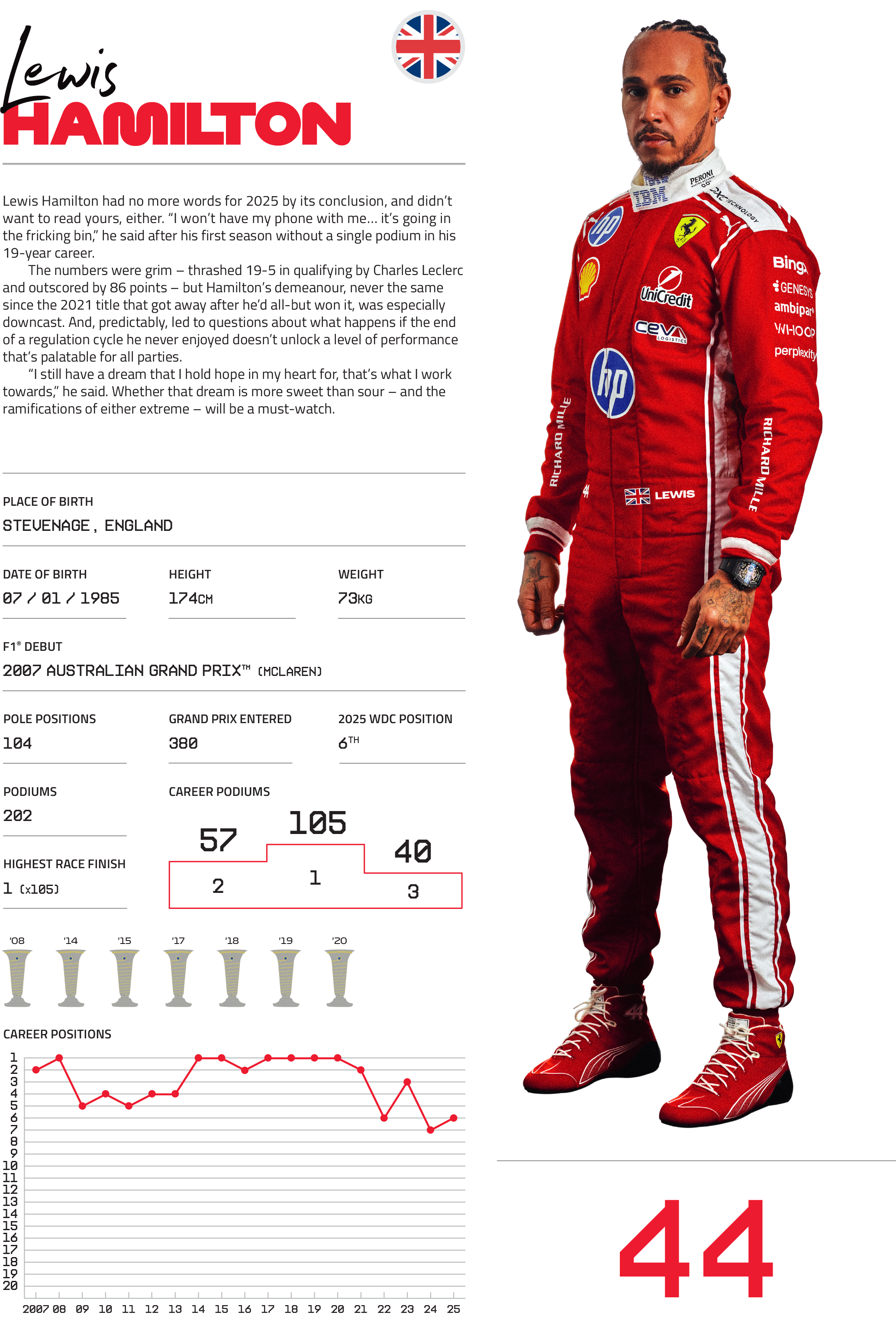 Lewis Hamilton had no more words for 2025 by its conclusion, and didn’t want to read yours, either. “I won’t have my phone with me… it’s going in the fricking bin,” he said after his first season without a single podium in his 19-year career.