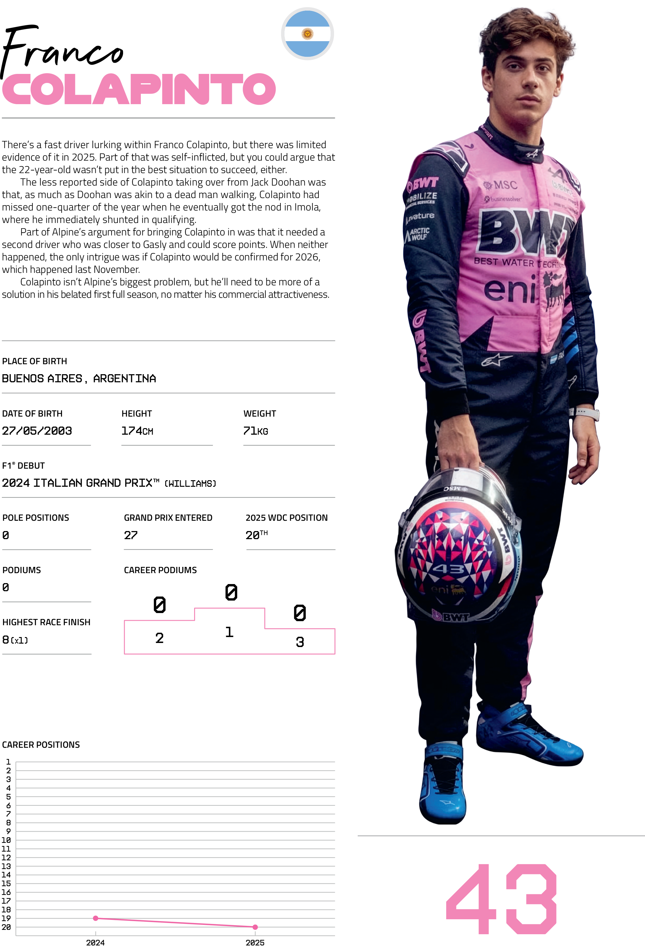 There’s a fast driver lurking within Franco Colapinto, but there was limited evidence of it in 2025. Part of that was self-inflicted, but you could argue that the 22-year-old wasn’t put in the best situation to succeed, either.