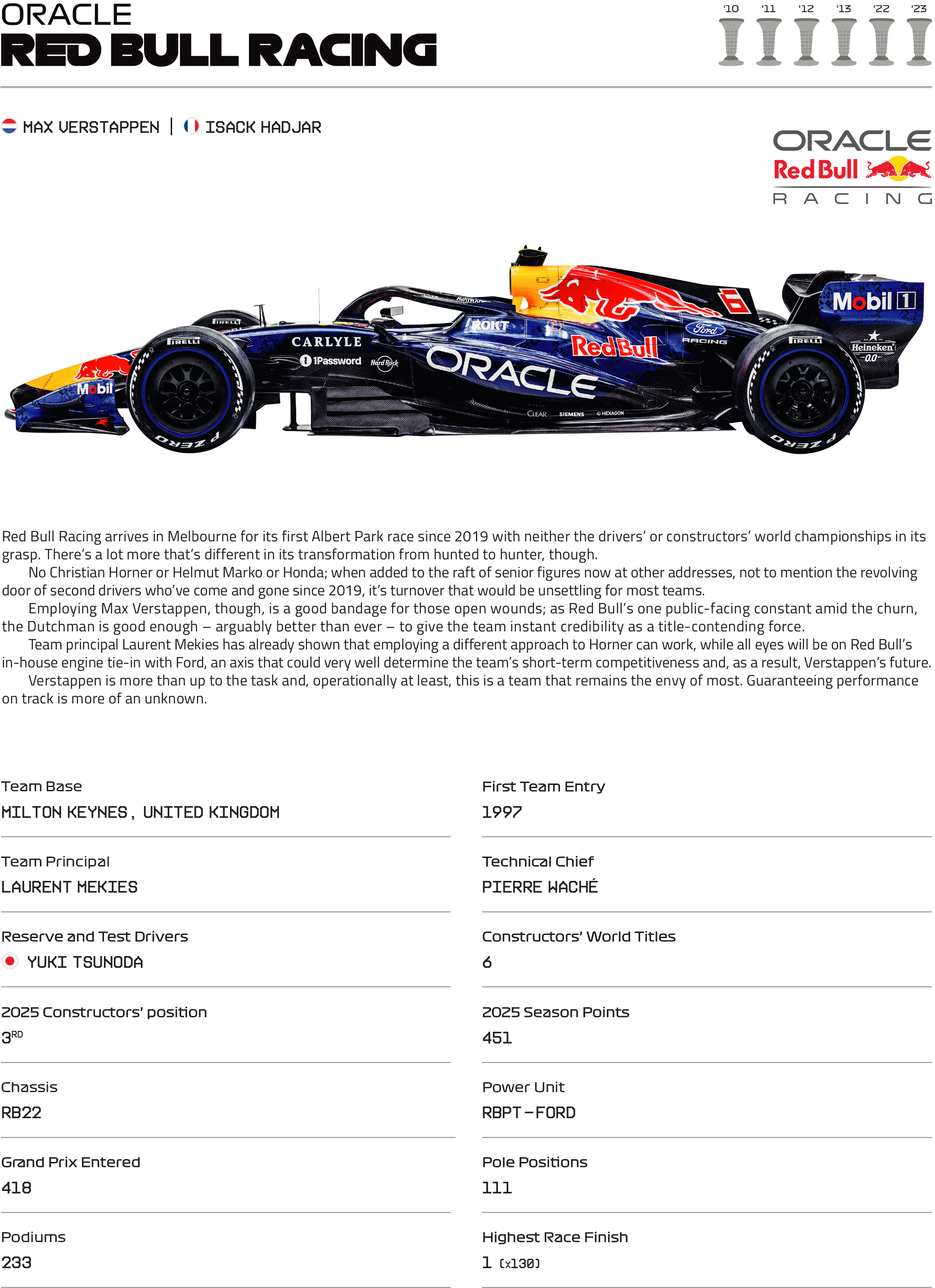 Team principal Laurent Mekies has already shown that employing a different approach to Horner can work, while all eyes will be on Red Bull’s in-house engine tie-in with Ford, an axis that could very well determine the team’s short-term competitiveness and, as a result, Verstappen’s future.