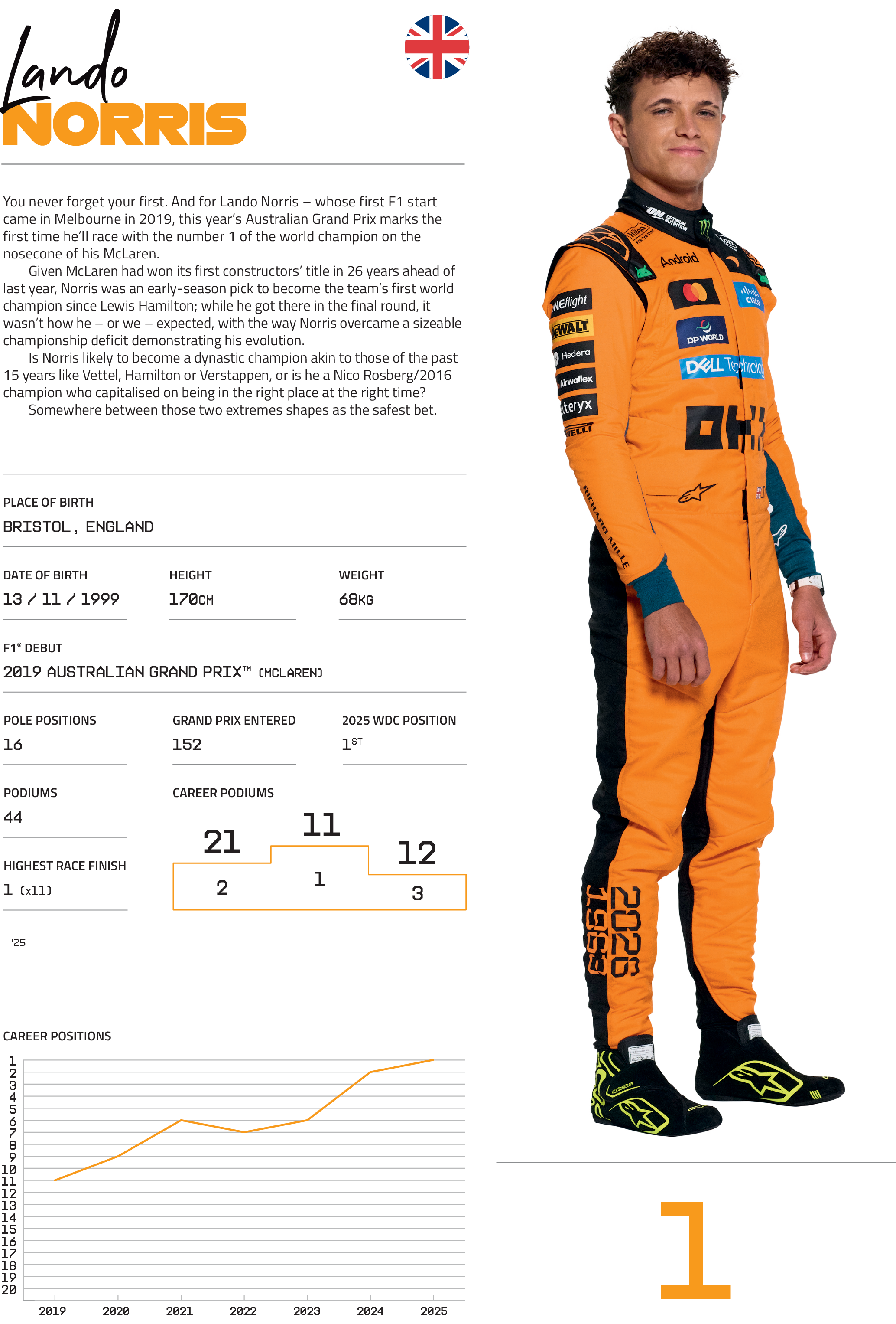 You never forget your first. And for Lando Norris – whose first F1 start came in Melbourne in 2019, this year’s Australian Grand Prix marks the first time he’ll race with the number 1 of the world champion on the nosecone of his McLaren.