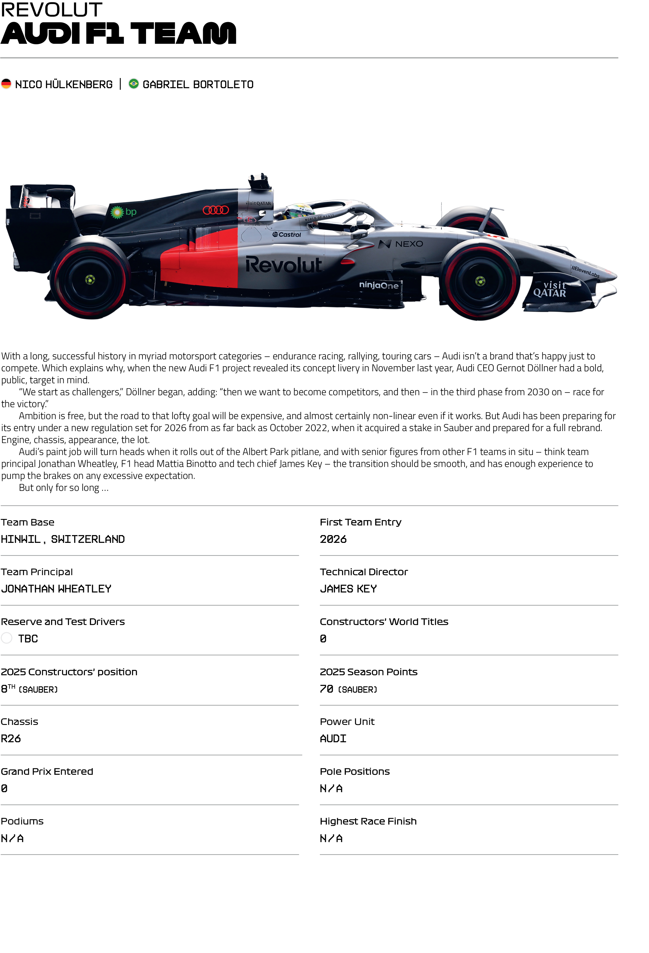 Audi’s paint job will turn heads when it rolls out of the Albert Park pitlane, and with senior figures from other F1 teams in situ – think team principal Jonathan Wheatley, F1 head Mattia Binotto and tech chief James Key – the transition should be smooth, and has enough experience to pump the brakes on any excessive expectation.