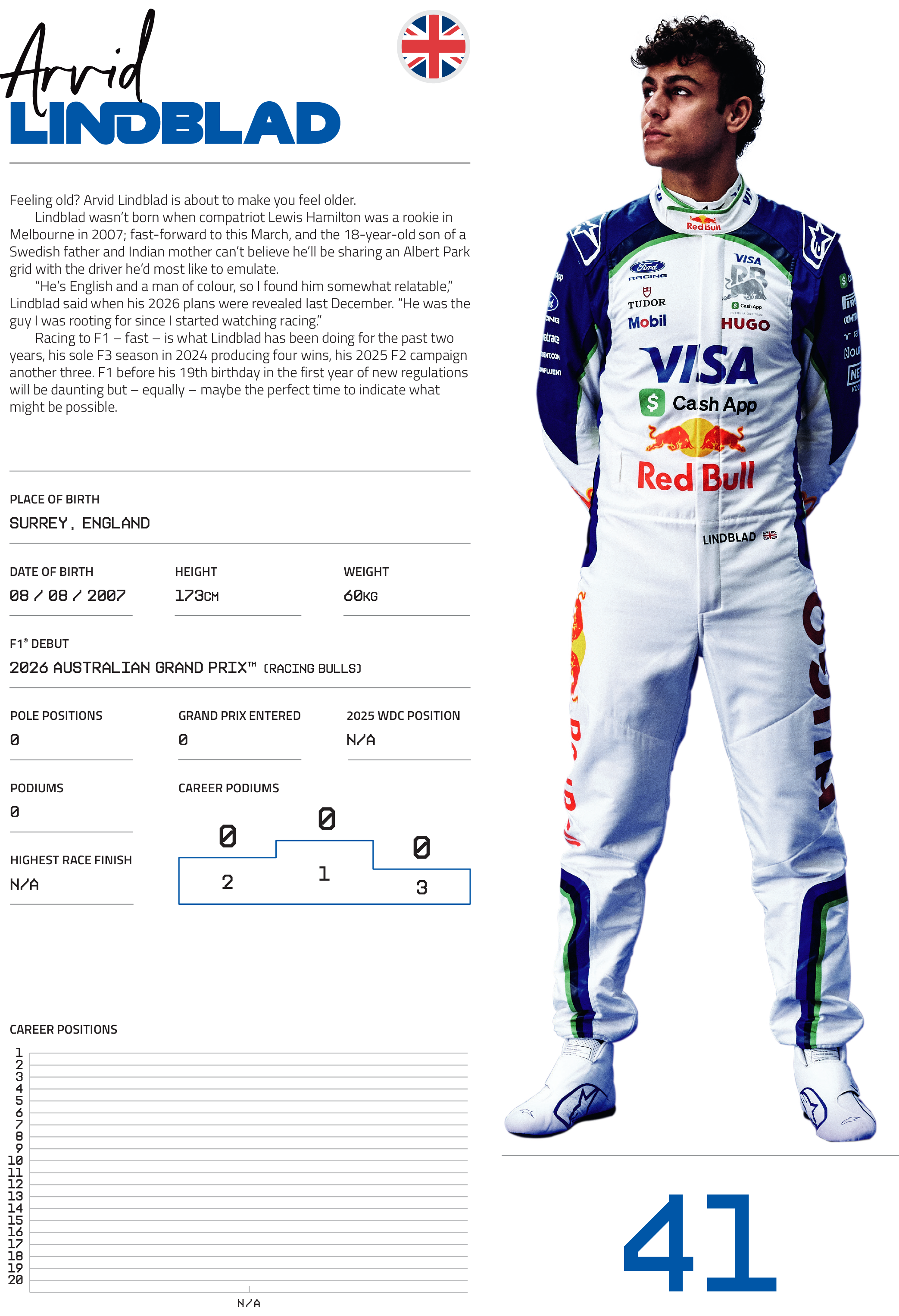 Lindblad wasn’t born when compatriot Lewis Hamilton was a rookie in Melbourne in 2007; fast-forward to this March, and the 18-year-old son of a Swedish father and Indian mother can’t believe he’ll be sharing an Albert Park grid with the driver he’d most like to emulate.