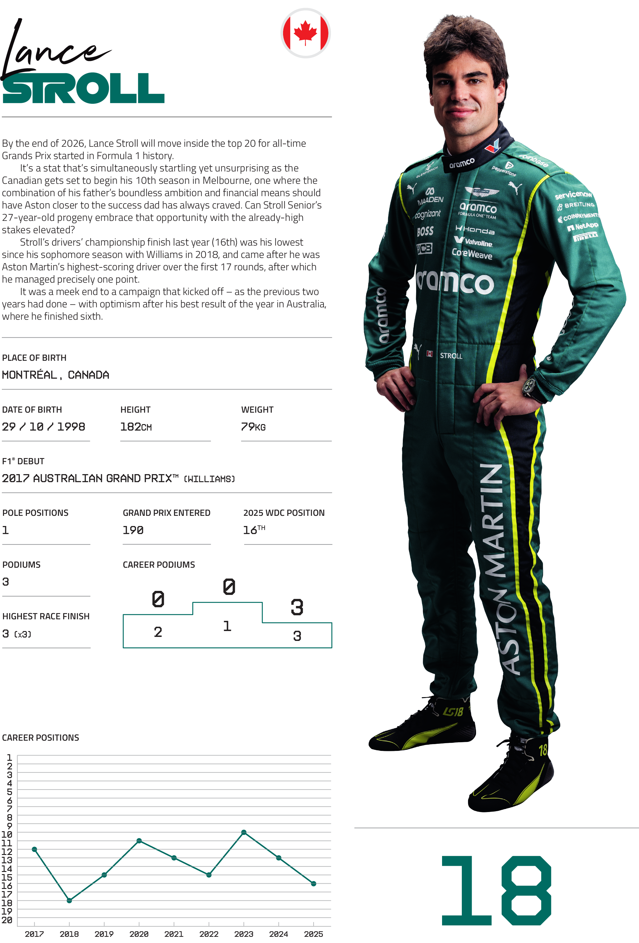 It’s a stat that’s simultaneously startling yet unsurprising as the Canadian gets set to begin his 10th season in Melbourne, one where the combination of his father’s boundless ambition and financial means should have Aston closer to the success dad has always craved. Can Stroll Senior’s 27-year-old progeny embrace that opportunity with the already-high stakes elevated?