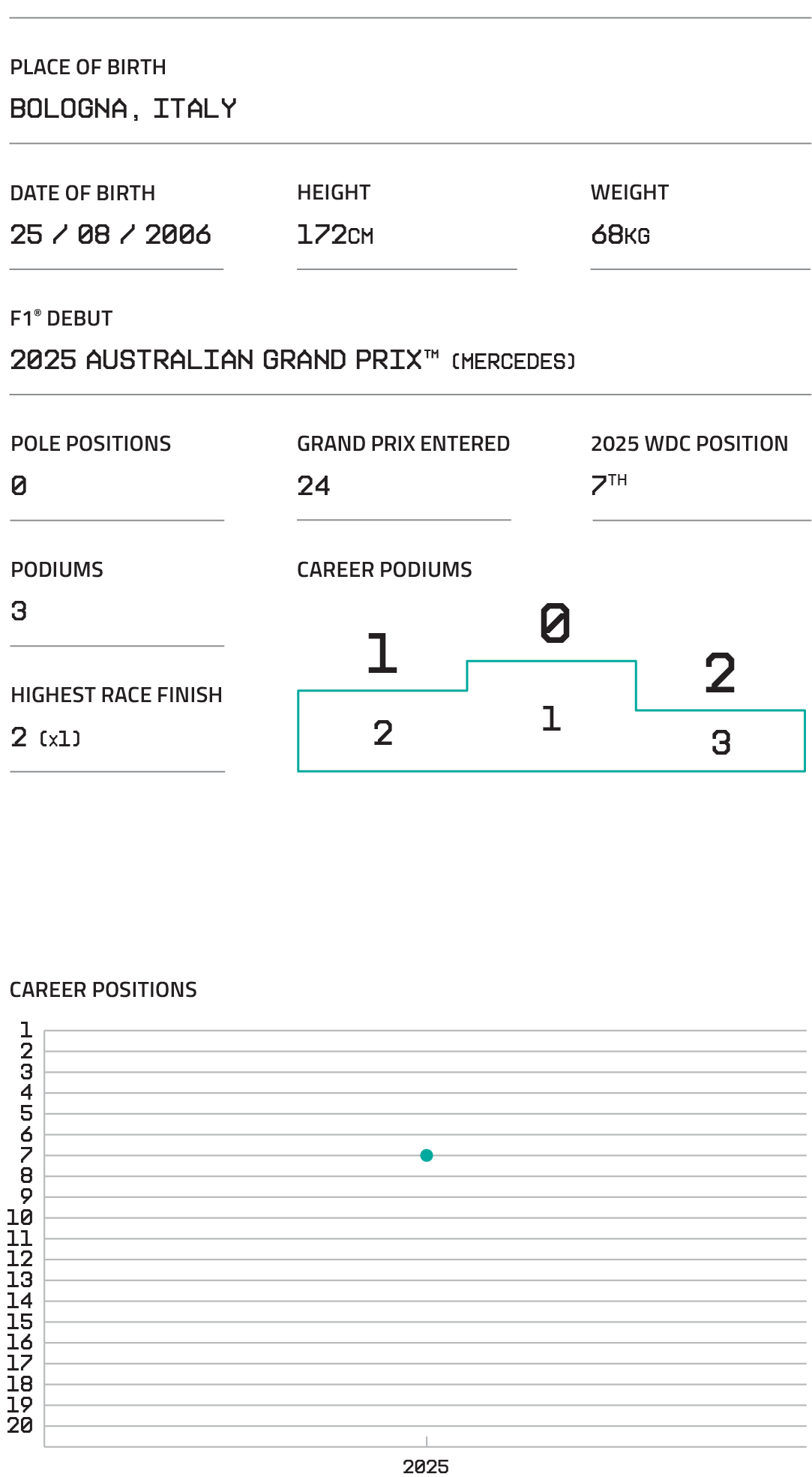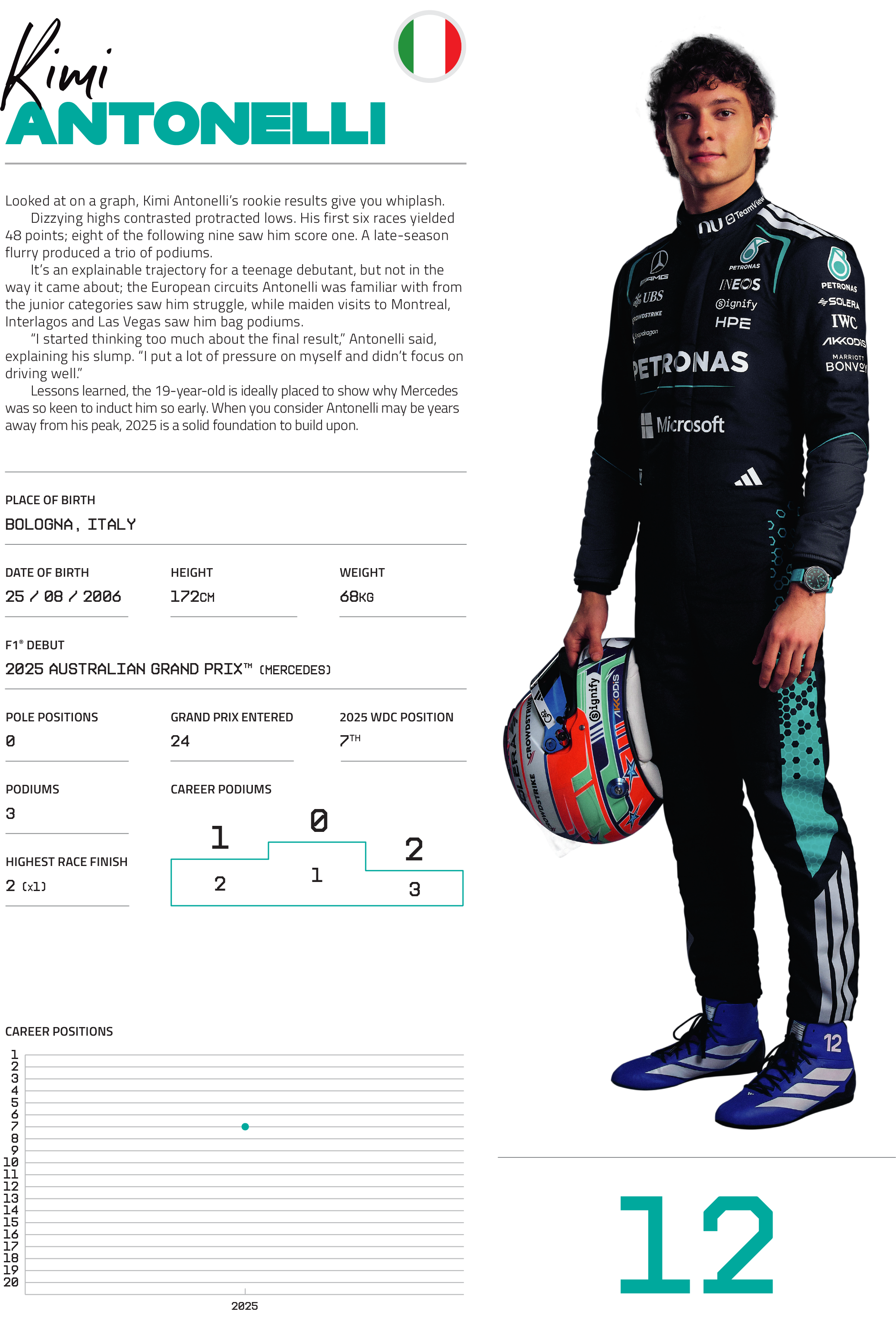 Lessons learned, the 19-year-old is ideally placed to show why Mercedes was so keen to induct him so early. When you consider Antonelli may be years away from his peak, 2025 is a solid foundation to build upon.
