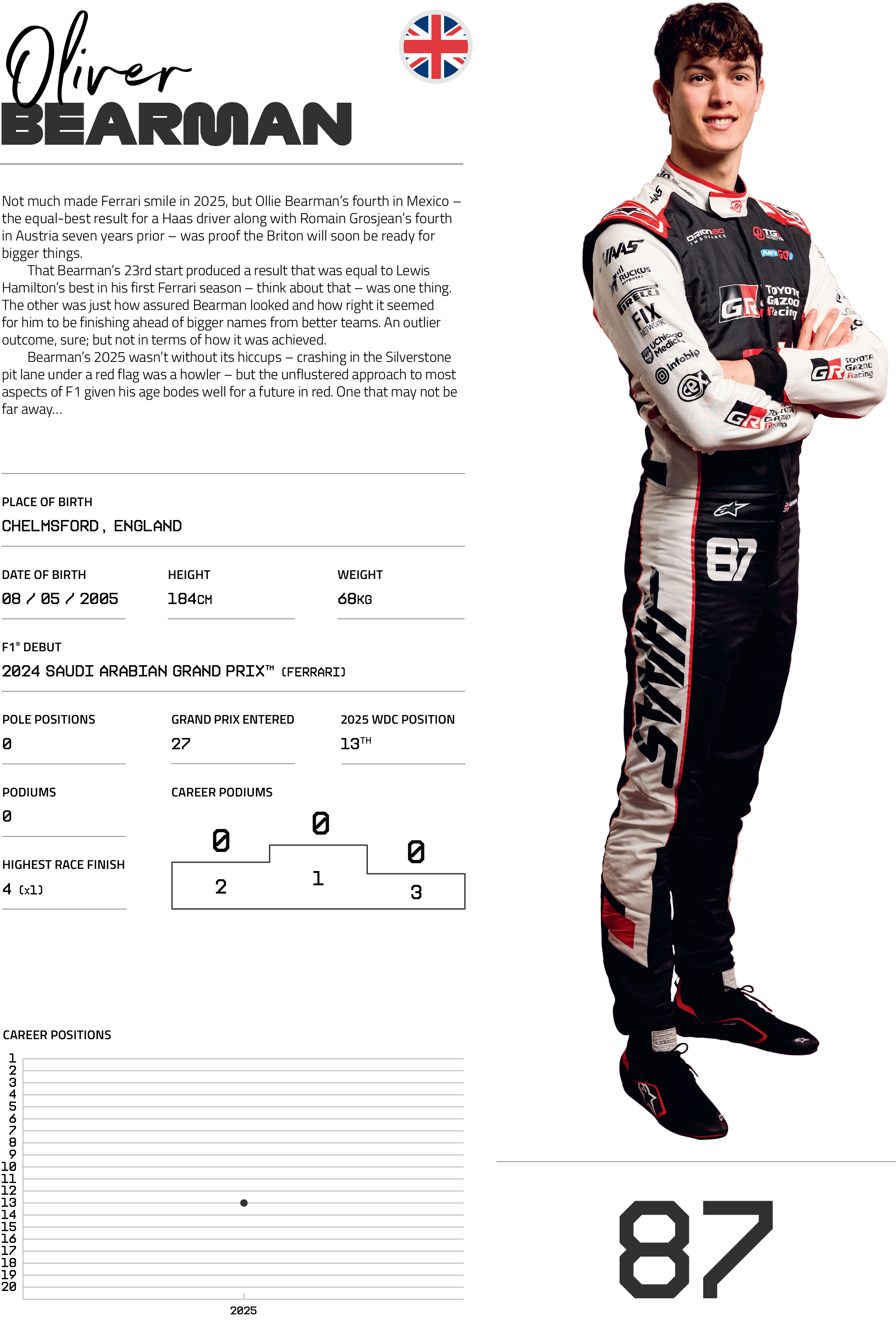 Bearman’s 2025 wasn’t without its hiccups – crashing in the Silverstone pit lane under a red flag was a howler – but the unflustered approach to most aspects of F1 given his age bodes well for a future in red. One that may not be far away…
