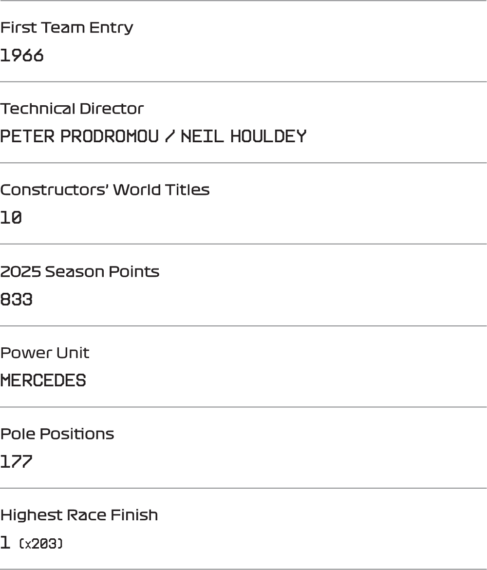 From 2014-21, the Silver Arrows won eight straight constructors’ titles and seven drivers’ crowns in succession until Abu Dhabi 2021 and … you know the rest. As the 2025 campaign came to a conclusion, paddock whispers placed Mercedes in the box seat to steal a similar march again. Team boss Toto Wolff’s response – “we are glass half-empty people, never half-full” – was predictable, but did little to quell the chatter as the ground- effect era that saw Mercedes’ impact wax and wane came to a close.